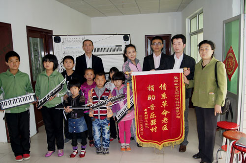 為響應落實教育部關于加強學校藝術(shù)教育的指示精神,4月末,中國教學儀器設備有限公司以及北京龍羽時代科技有限公司聯(lián)合我公司來到了河北阜平縣馬蘭村,參加了紀念鄧拓誕辰百年匯報演出活動,并向這里的小學贈送了由江蘇天鵝樂器有限公司無償提供的37鍵全樂理口風琴,以提高學生的音樂素質(zhì)。