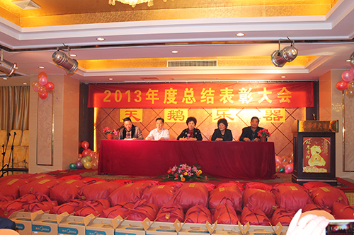 2014年元月28日下午,江蘇天鵝樂器有限公司2013年年終工作會(huì)議在靖江喜洋洋大酒店隆重召開。公司董事長陳紅梅、總經(jīng)理丁益同等領(lǐng)導(dǎo)與200多名職工歡聚一堂。