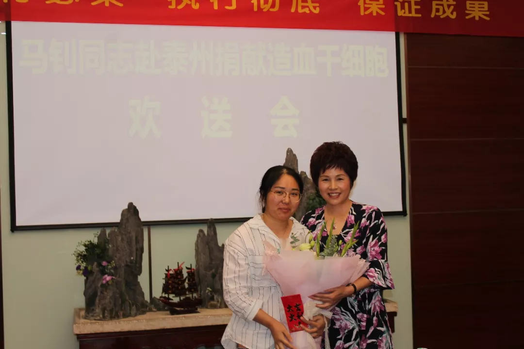 10月7日下午,天鵝公司舉行馬釗同志赴泰州捐獻造血干細胞歡送會,馬釗作為天鵝公司新產(chǎn)品車間的一名普通員工,更是一位熱血奉獻青年,是靖江第5位捐獻造血干細胞的志愿者,她的這種大愛精神讓靖江人為之感動,天鵝公司的家人們都為之自豪,董事長陳紅梅現(xiàn)場贈與獎金,以表彰馬釗同志“我為人人、互助互愛”的奉獻精神。