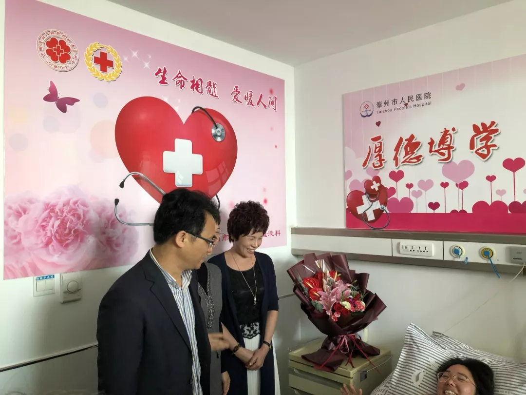 10月16日,也就是馬釗正式捐獻造血干細胞的日子,對于所要捐獻的4歲女孩兒,馬釗總是說:“我女兒也才7歲,將心比心,我只是想要幫助她遠離病痛的折磨”。簡單的話語,卻襯托出這位年輕媽媽堅定的決心。與此同時,家人和同事的鼓勵與支持也給予了她充分的信心,捐獻當天,公司董事長陳紅梅也專程趕赴泰州市人民醫(yī)院,代表公司全體員工對她表示關心慰問。