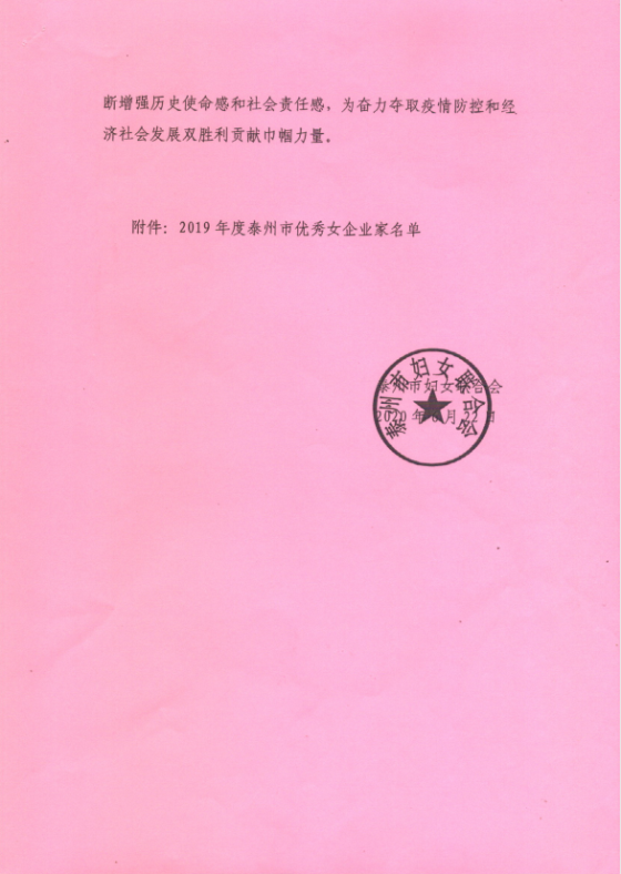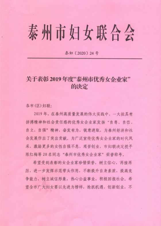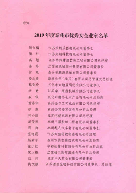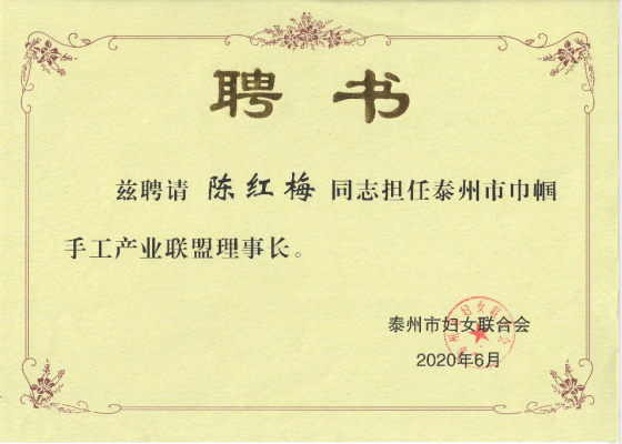 在泰州市巾幗三大聯(lián)盟成立大會(huì)上,天鵝樂器董事長陳紅梅被泰州市婦女聯(lián)合會(huì)聘為泰州市巾幗手工產(chǎn)業(yè)聯(lián)盟理事長,并被泰州市婦女聯(lián)合會(huì)和泰州市女企業(yè)家聯(lián)合會(huì)聯(lián)名授予泰州市2019年度“優(yōu)秀女企業(yè)家”榮譽(yù)稱號。
