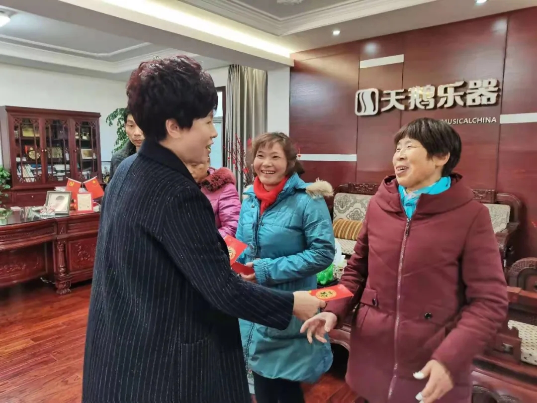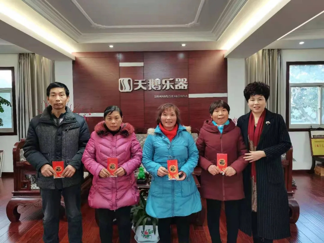 音樂會(huì)結(jié)束后,天鵝樂器董事長陳紅梅專門組織慰問困難職工。多年來,公司致力于為困難職工解決切身問題,彰顯企業(yè)大愛精神。