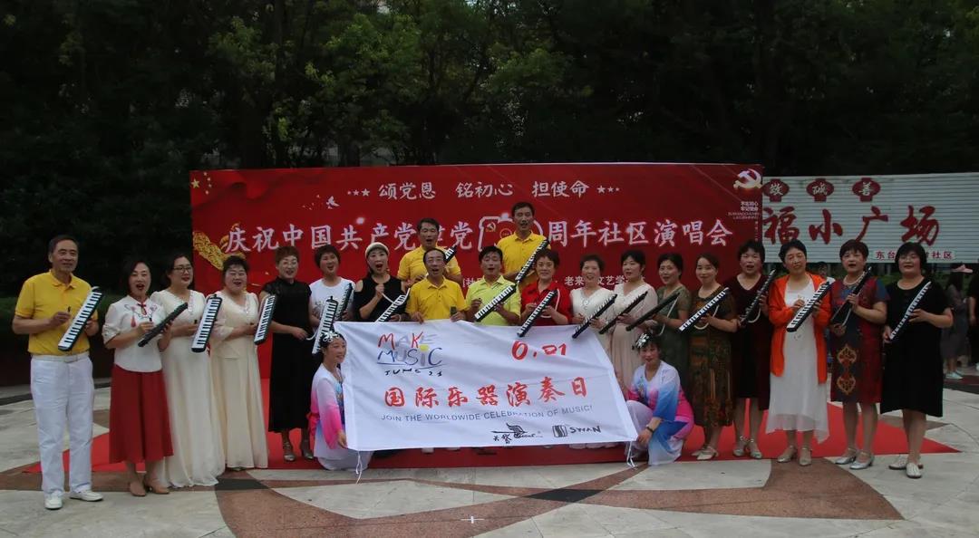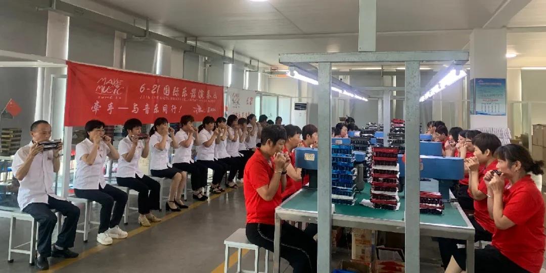 為慶祝中國共產(chǎn)黨百年華誕,充分展示天鵝公司推動音樂教育“三進(jìn)”工程的成果,天鵝公司在6月21日這一天組織12個口琴樂隊在公司廣場、音樂廳及多個車間舉行口琴演出聯(lián)誼活動。天鵝樂器作為聯(lián)合主辦單位,聯(lián)合了紫丁香天鵝口琴社、嘉興市嘉善縣青少年宮、嘉興琴藝口琴培訓(xùn)中心、南京強(qiáng)國口琴藝術(shù)團(tuán)、山東德州大眾口琴樂團(tuán)、大同市御河九號口琴隊、蘭州市城關(guān)區(qū)東崗小學(xué)、云南知青口琴樂團(tuán)、青島口琴大聯(lián)盟、東臺市老來樂藝術(shù)團(tuán)等單位共同開展“6·21國際樂器演奏日”,體現(xiàn)音樂帶來的快樂,給人注入實實在在的活力和動力。