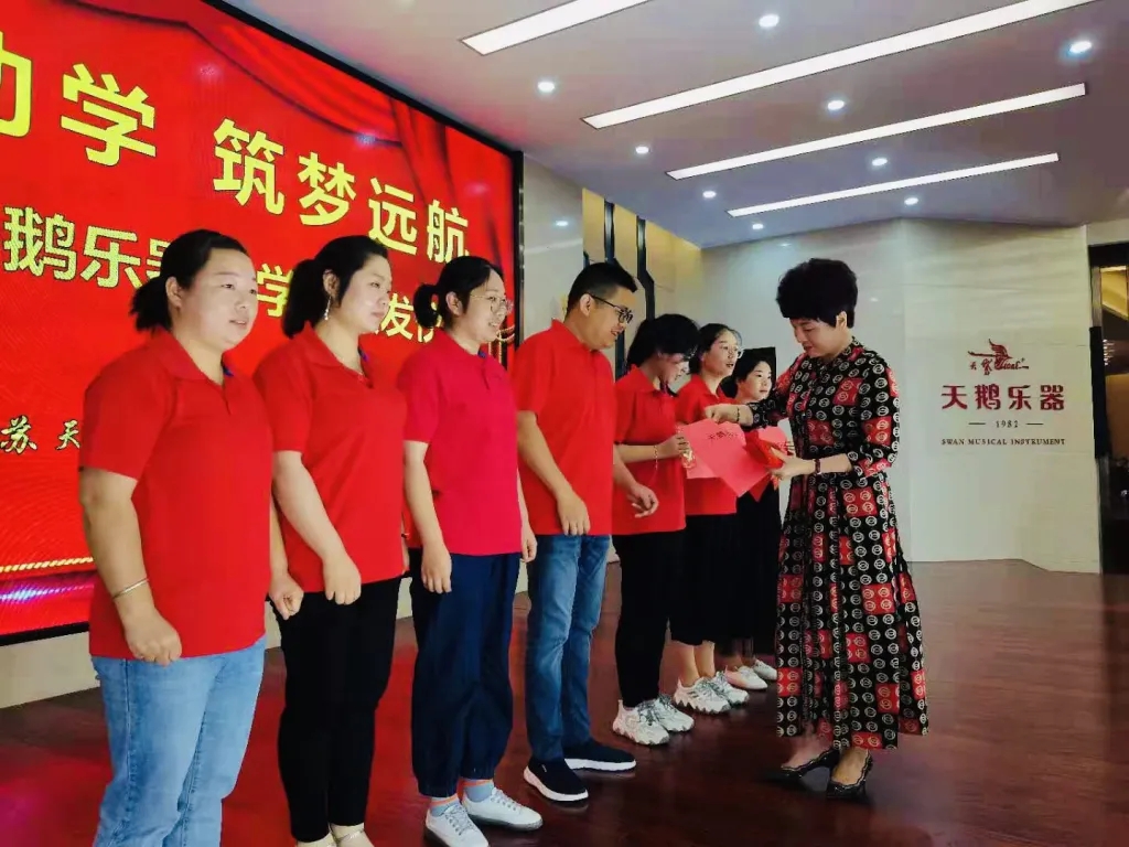 天鵝公司通過39年的持續(xù)發(fā)展,已躋身中國(guó)樂器行業(yè)50強(qiáng),并榮獲中國(guó)馳名商標(biāo)、江蘇名牌產(chǎn)品、國(guó)家高新技術(shù)企業(yè)等諸多榮譽(yù)。天鵝產(chǎn)品享譽(yù)國(guó)內(nèi)外市場(chǎng),隨著企業(yè)的不斷發(fā)展壯大,公司把關(guān)心員工子女的成長(zhǎng)教育作為公司持續(xù)發(fā)展的動(dòng)力和根基。充分體現(xiàn)了天鵝的企業(yè)文化、人文關(guān)懷和回饋社會(huì)的責(zé)任感,激發(fā)廣大員工愛崗敬業(yè)的精神,鼓勵(lì)員工子女成為社會(huì)有用人才。天鵝公司設(shè)立了“天鵝獎(jiǎng)學(xué)金”,對(duì)符合條件的員工學(xué)子每年發(fā)放獎(jiǎng)學(xué)金,對(duì)能獲評(píng)“三好學(xué)生”的子女另外嘉獎(jiǎng),對(duì)考取985、211的子女進(jìn)行重獎(jiǎng)。員工們十分感謝公司的這一舉措,感恩公司不僅提供了就業(yè)的平臺(tái),對(duì)子女的教育也十分關(guān)心,實(shí)實(shí)在在地激發(fā)了廣大員工的工作熱情,受獎(jiǎng)員工的學(xué)子心里感到暖暖的。